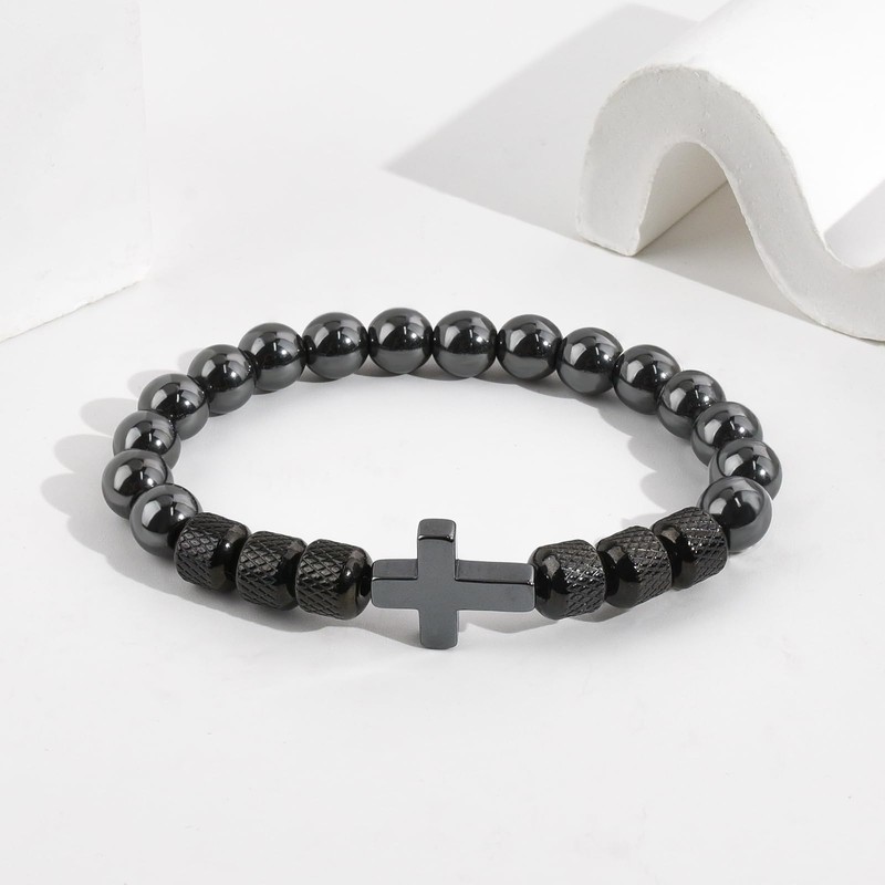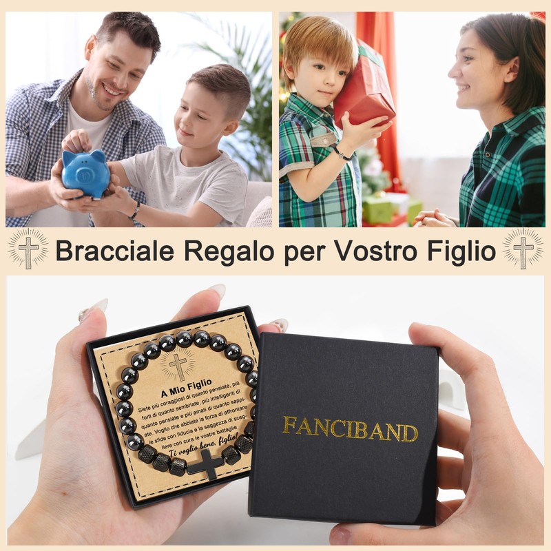 FANCIBAND Geschenk Sohn Armband Herren Kreuz Stein Obsidian Schwarz Elastisch, Rosenkranz Armbänder Herren An Mein Sohn Geburtstag Geschenke Weihnachten Erstkommunion Geschenk Abschluss zurück zur