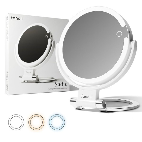 The lightweight design of Sadie, just over 1 pound, and its convenient folding feature make it compact and easy to pack into your suitcase or carry-on, perfect for wherever your adventures take you. Enjoy the best lighting with three settings—warm white, neutral white, and natural daylight—ensuring your makeup looks flawless no matter where you are. Thanks to the 360-degree swivel design, you can adjust the mirror to any angle for a perfect view from every direction.