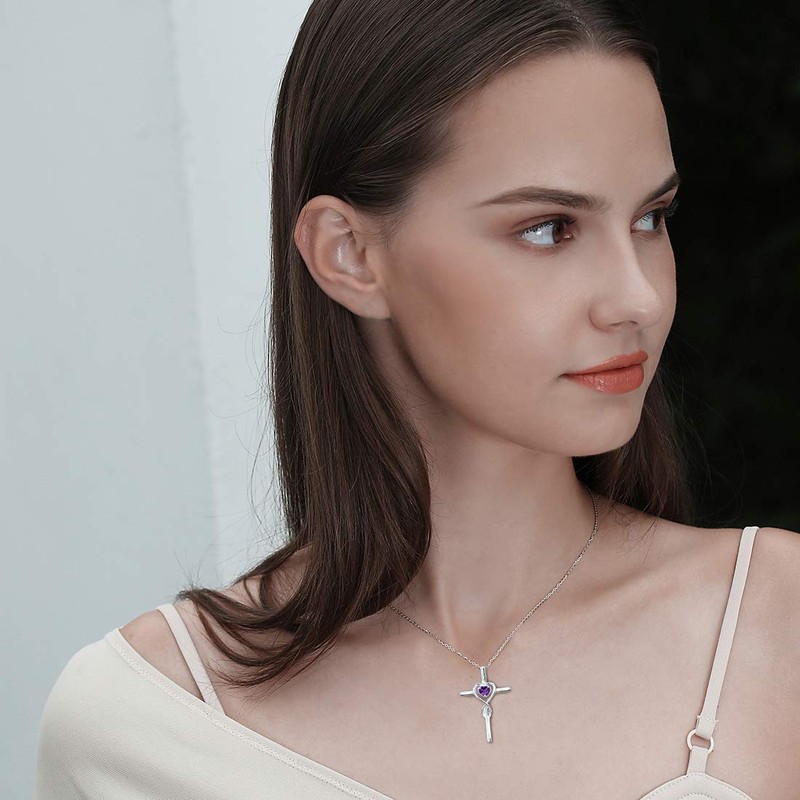 FANCIME 925 Sterling Silver Cross Infinity Heart Pendant Necklace with Natural Amethyst Gemstone Fine Jewellery for Women Girls - Chain Length: 16 + 2 Inch