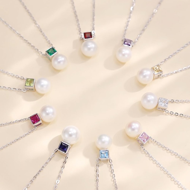 - A classic design of a single natural pearl and a simple birthstone and pearl necklace that will not lose its luxury. Artisans carefully select genuine circles, strong light, thick leather, and high quality natural pearls, and further decorate the birthstone known as amulet stone, to create an elegant and auspicious necklace. The refined silver and natural pearl necklace with a gentle luster enhances the beauty of a woman's skin color