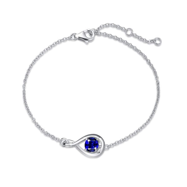 FANCIME September Sapphire Birthstone Bracelet for Women 925 Sterling Silver Dainty Infinity Link Bracelet Fine Jewelry Christmas Birthday Gifts for Mom Wife, Chain Length 6.7+1.2"