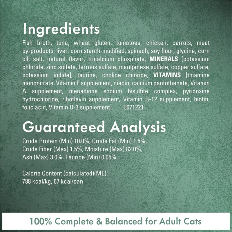 - Crafted in partnership with our expert chefs and nutritionists with real, high-quality ingredients, including real tuna, tomatoes, carrots and spinach in a savory Fancy Feast cat food broth