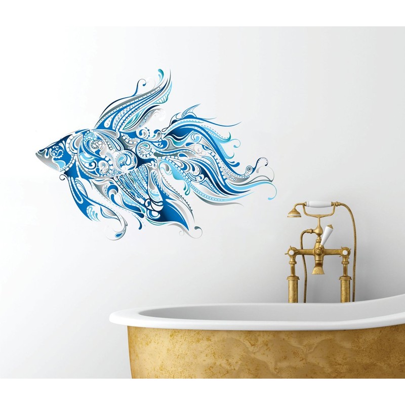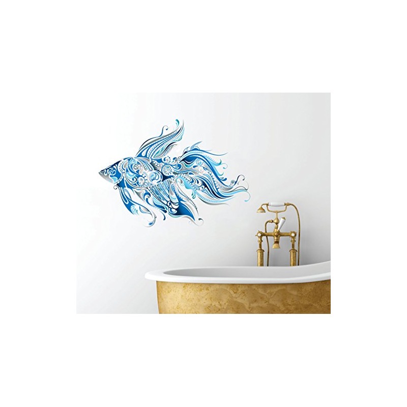 Fancy Fish Design - Beautiful Ocean Inspired - Bathroom Wall Decal - 14" x 8"