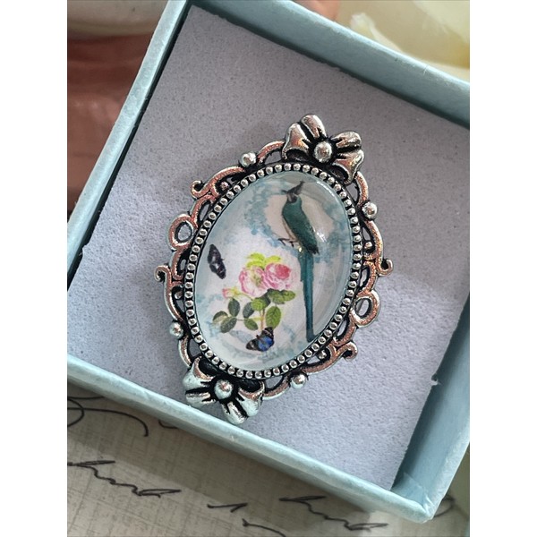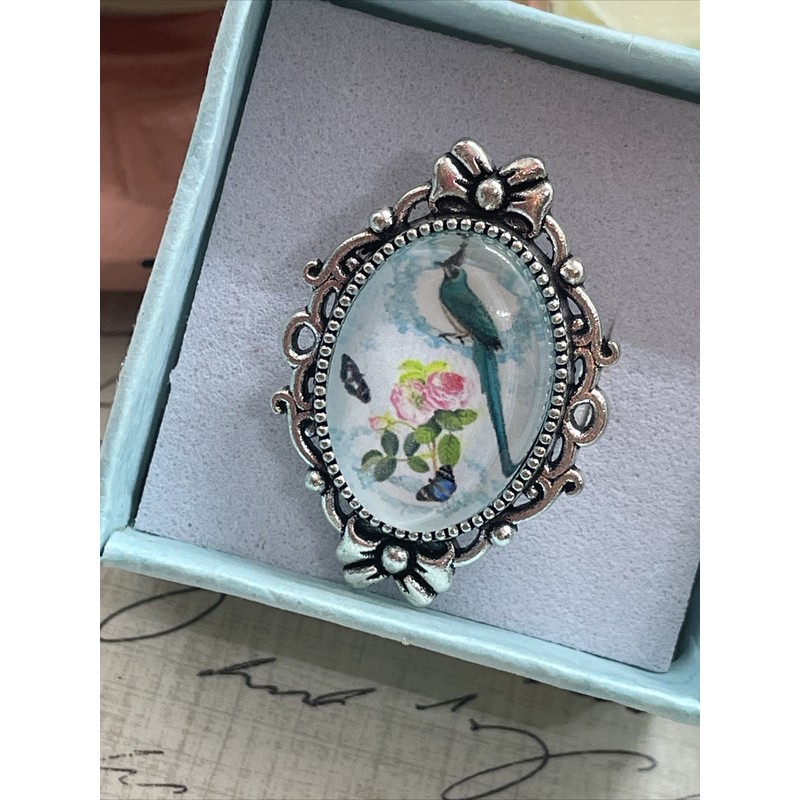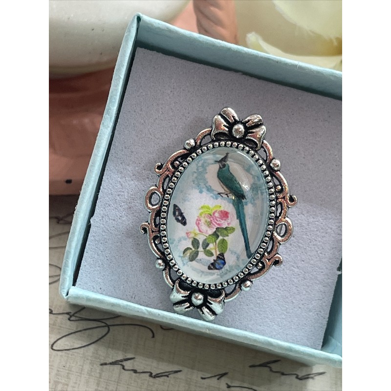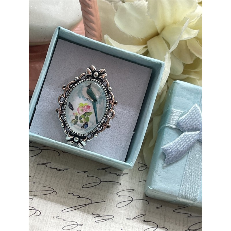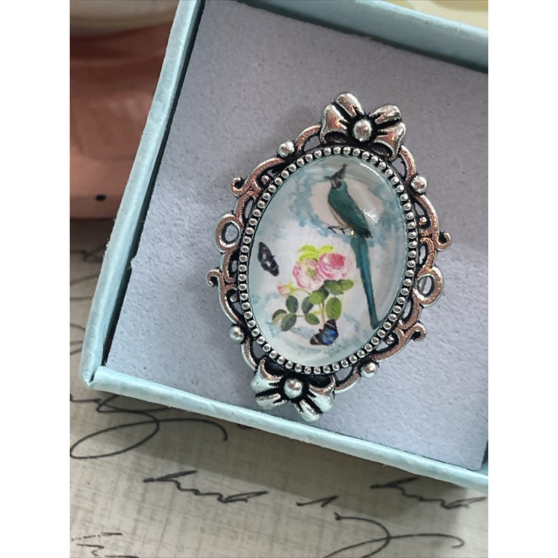 FANCY FOX BOUTIQUE Silver Blue Jay Bird Mom Butterfly Renaissance Gift Ring Adjustable Memorial