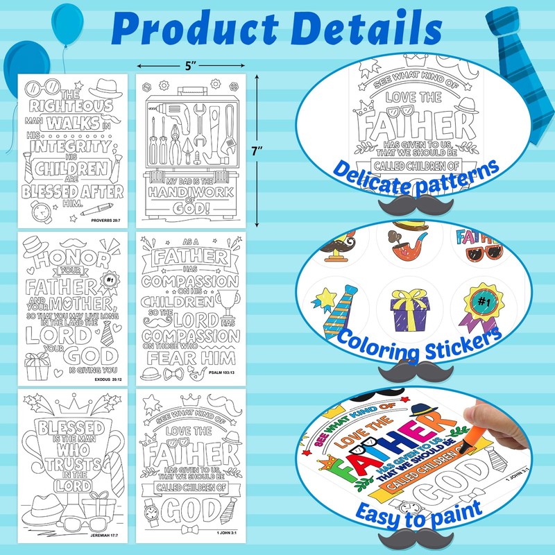 - Package Includes: 12 religious father’s day cards in 6 designs with coloring stickers and envelopes