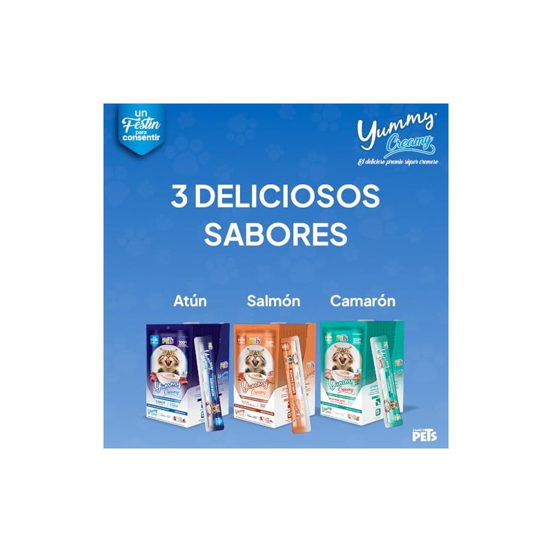 Olvídate de los premios aburridos y sin chiste. Con Fancy Pets Yummy Creamy, transformas la rutina en un festín de sabor. Su textura suave y lamible es irresistible para los gatos, incluso para los más exigentes. Observa cómo disfruta hasta la última lamida, saboreando el exquisito sabor a salmón que lo dejará pidiendo más. 😋 ¡Prepárate para recibir mucho amor felino!