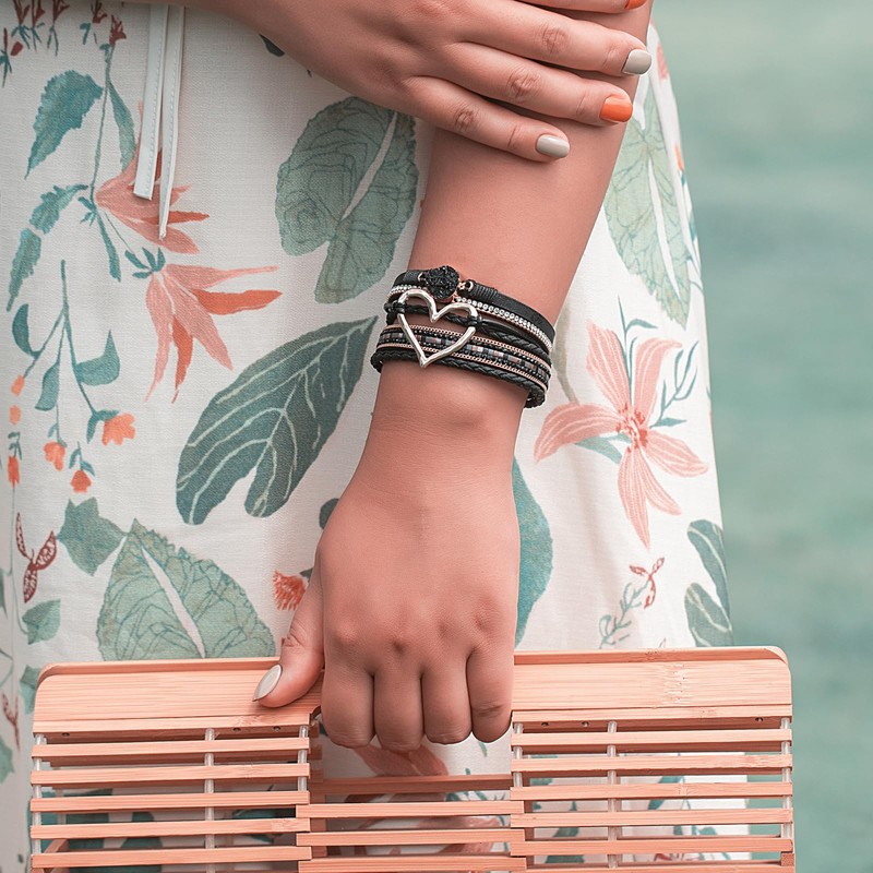 - Colorful Wrap Bracelet: Get the eye-catching black heart bangle for your daily outfit.