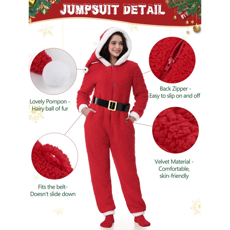 - High Velvet Quality: This fabric is made of thickened Sherpa, this is a women's Christmas one-piece pajama, keep you warm and comfortable, without any excitement