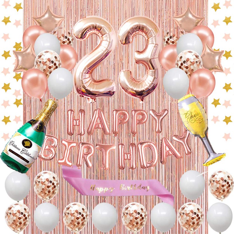 Fancypartyshop 23rd Birthday Decorations - Rose Gold Happy Birthday Banner and Sash with Number 23 Balloons Latex Confetti Balloons Ideal for Girl and Women 23 Years Old Birthday Rose Gold