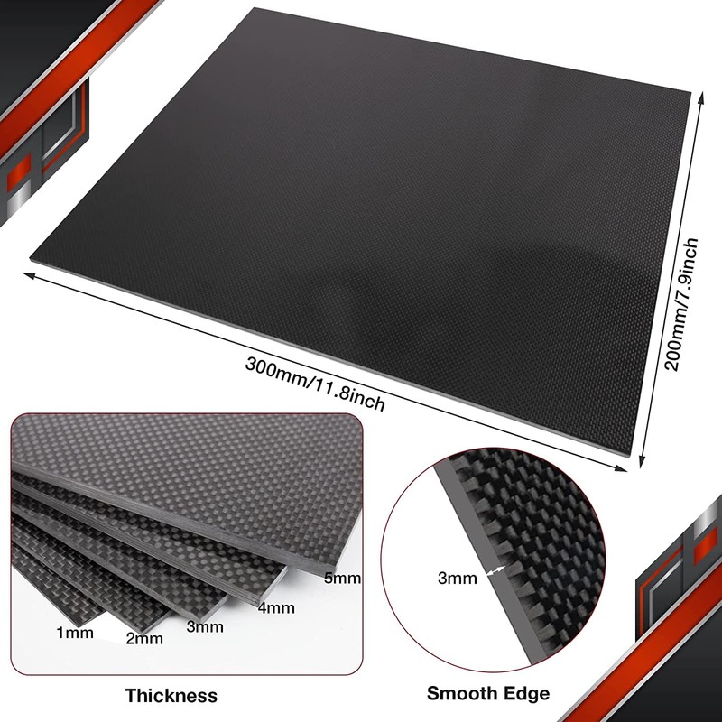 FANCYWING 200X300X3.0MM 100% 3K Carbon Fibre Laminate Plate Plain Weave Panel Sheet 3.0MM Thickness (Glossy Surface)