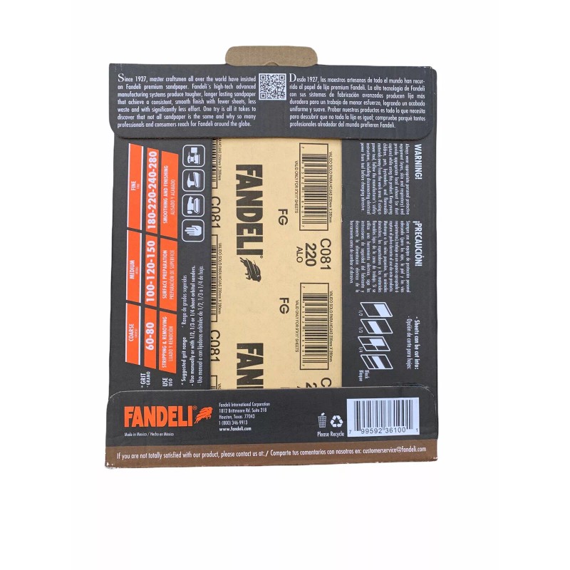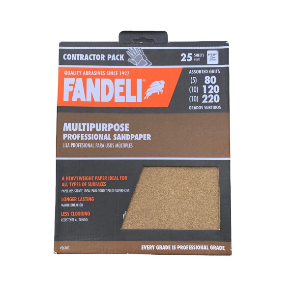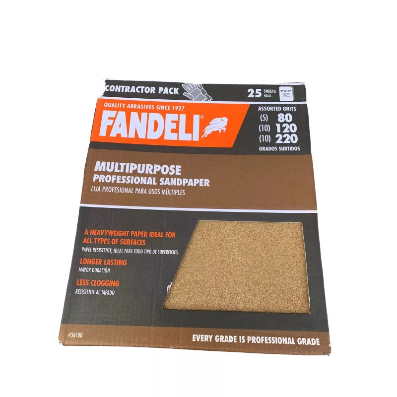 Fandeli Multi-Purpose 9 x 11" Professional Sandpaper Assorted Grit 25-Sheet/Pk