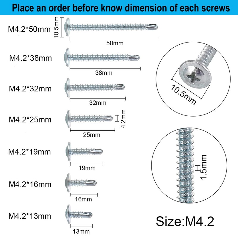 - 🔩【Type】:Self Drilling Screws (sometimes called self-tapping screws) .