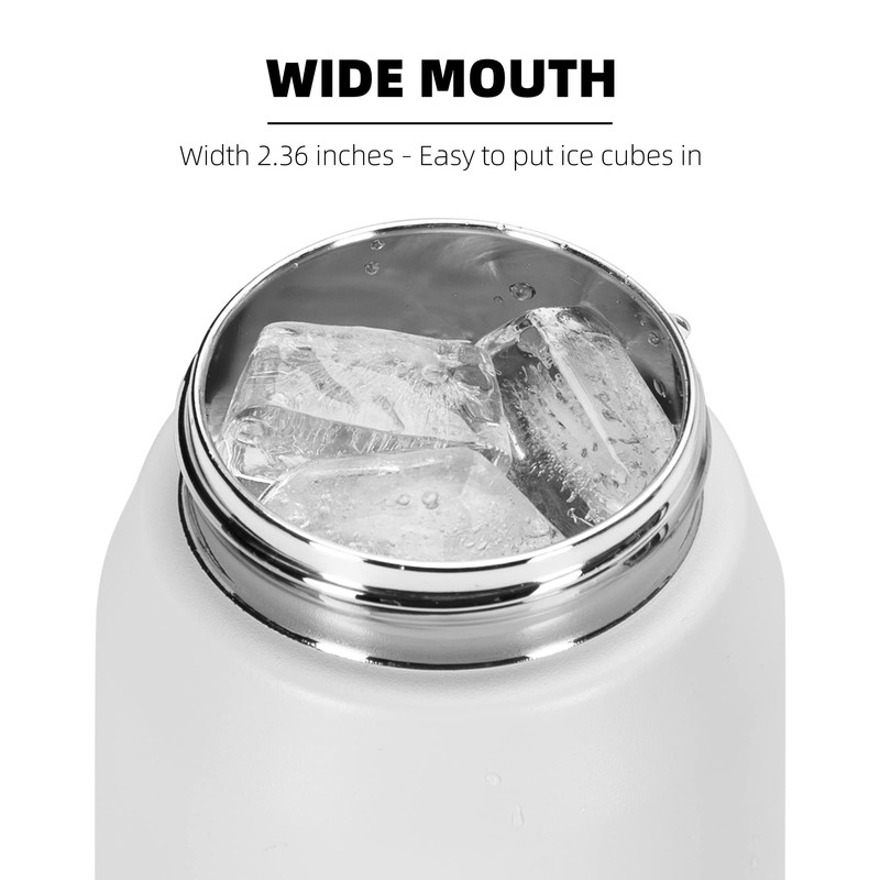 Fanhaw 24 Oz Stainless Steel Insulated Sports Water Bottles with Straw for Kids, Men and Women (White)