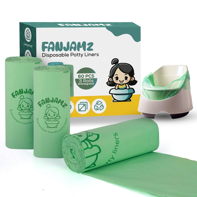 60 Count Potty Liners for Toddlers & Pets – OK Compost Certified Travel Potty Bags - 5 Liters Leak-Proof Disposable Potty Training Bags for Potty Seat