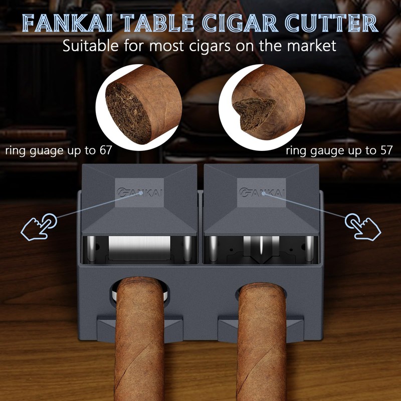 - 2-in-1 Desk Cigar Cutter--Includes V-Cut and S-Cut, with a depth of 8mm; straight cut ring gauge up to 67; V cutter ring gauge up to 57;suitable for most cigars; high-quality stainless steel blades ensure clean and precise cutting for straight cut and V cut