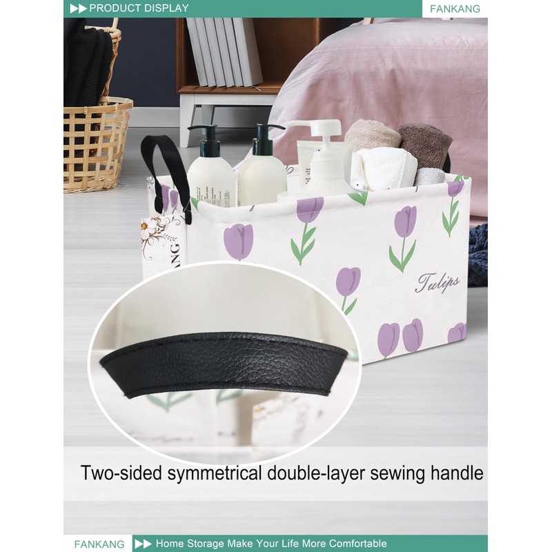 FANKANG Storage Bins, Nursery Hamper Canvas Laundry Basket Foldable with Waterproof PE Coating Large Storage Baskets for Kids Boys and Girls, Office, Bedroom, Clothes,Toys(Rec-tulips