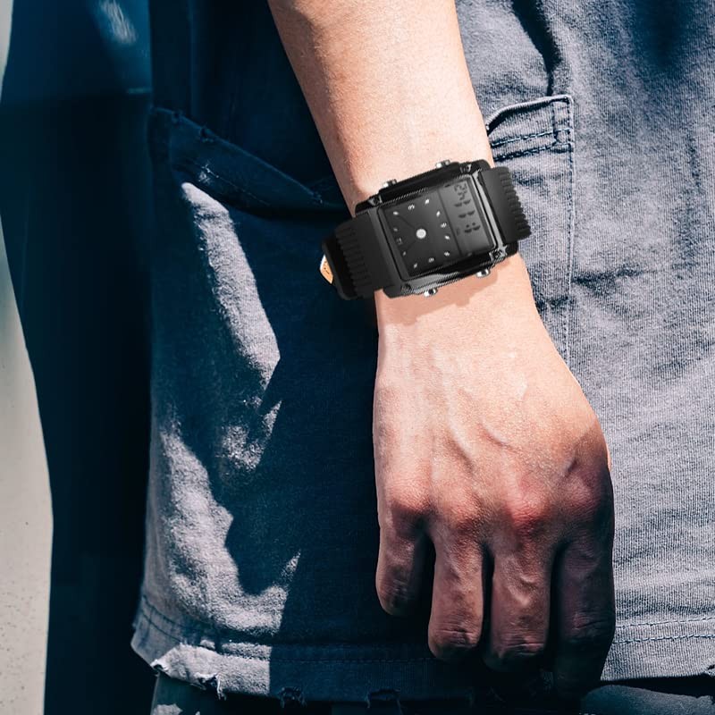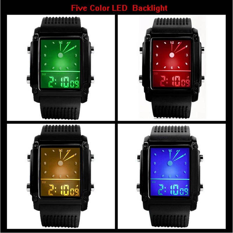 FANMIS Men's Waterproof Rectangle Dial Analog Digital Wrist Watch with Five LED Backlight Color Black