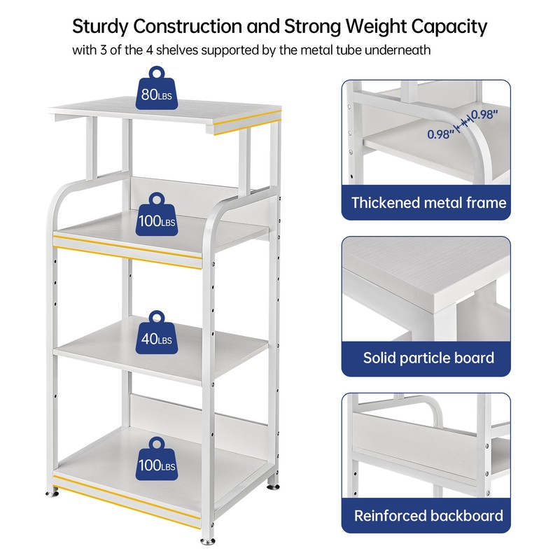 - 【Sturdy and Heavy Duty】With 3 of the 4 shelves braced by the robust steel tube underneath and additional two backboards, this printer stand comes as sturdy as a rock and possesses exceptional load capacity. High quality particle board with water- & wear-resistant surface and 0.98in reinforced square steel tube frame, which is thicker than usual 0.78in tube, makes the printer table quite a durable furniture that will hold up for years to come.
