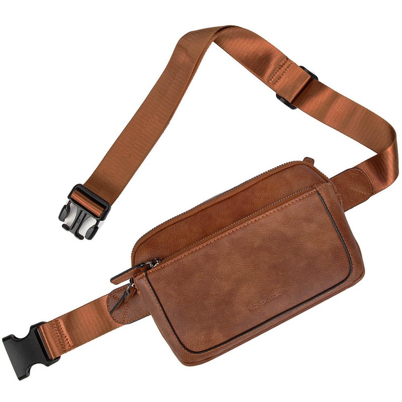 Fanny Packs for Women, Leather Vegan Belt Bag Crossbody Waist Bag Adjustable Strap, Large Fashion Everywhere Belt Bag, Brown