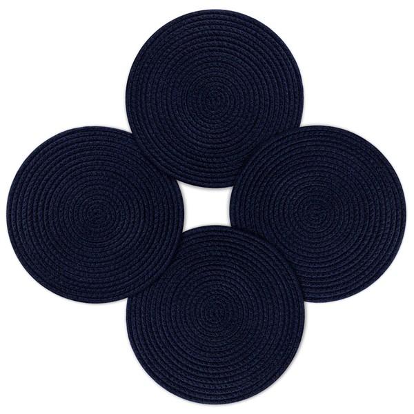 fanquare Round Table Mats Set of 4 Not Easily Stained Dark Blue Cotton Braided Placemats 12 inch Heat Resistant Place Mats Flat and Not Easy to Deform