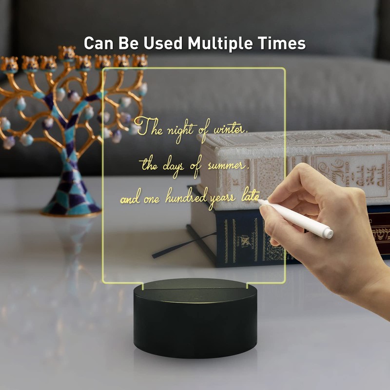 - 【Fun DIY Message Board】With the 7 Color erasable pen, you can create as much as you want. Write good wishes for loved ones and friends, perfect as a goodbye romantic board, photo frame, funny painting, LED night light gift. It will bring back great memories. Tell your lover how much you love her with an acrylic night light engraved with beautiful sayings. It's not just a night light, it's full of love and miss.