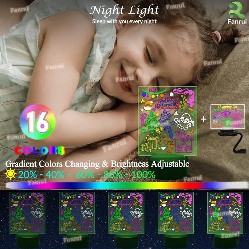 Fanrui 16 Colors Change LED 6.96 x 5.43 Acrylic Dry Erase Board with Remote Control, USB Power, Rewritable, Night Light, Touch Control, Dimmer, for Home & School & Ultra-Thin Writing Memo Light Board