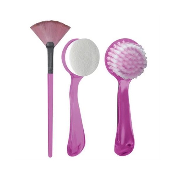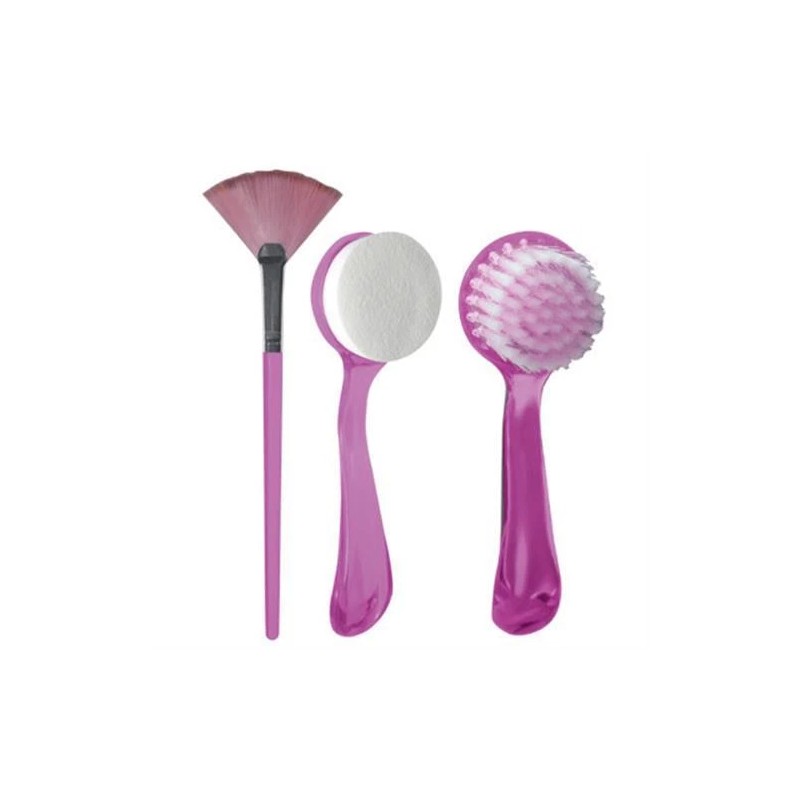 Items in set can all be used for exfoliation treatments. The synthetic fan brush can be used for glycolic and mask applications, the synthetic facial brush exfoliates and cleanses skin and the latex application wand can be used for manual microdermabrasion. 3 pc. set.