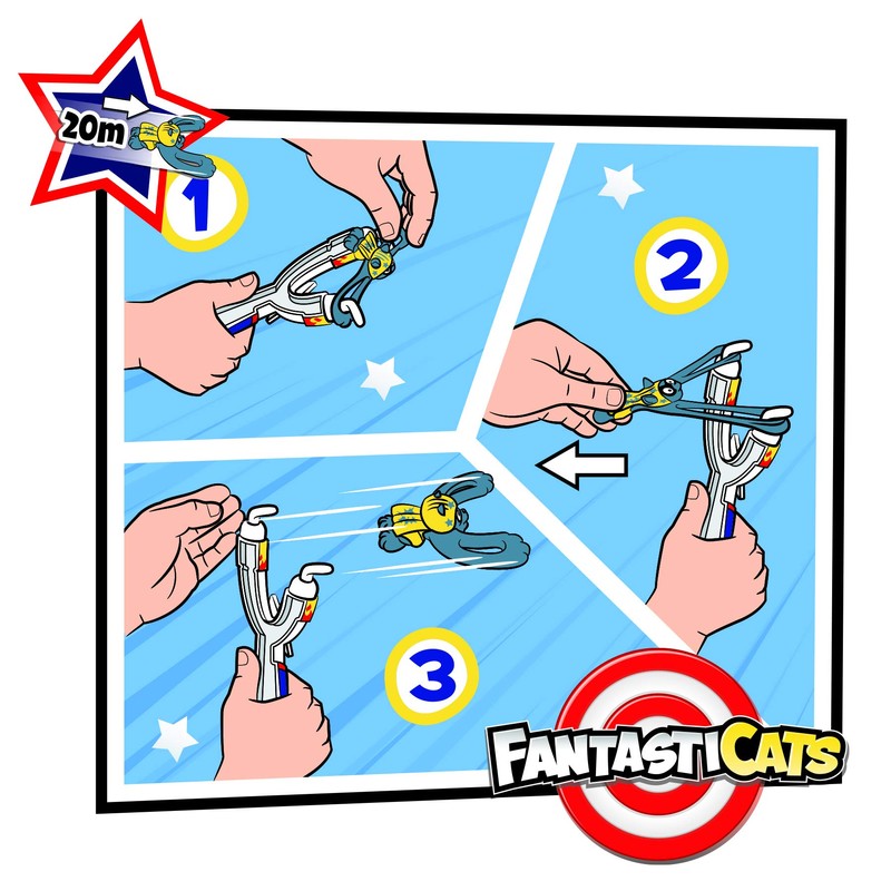 - The Fantasticats are the coolest stunt team you'll meet. There are four Fantasticats ready to fly Clawkowski, Tiger, Catticus and Catnip. Fire the super stretchy, super squeezable Fantasticats through the air, aim at the targets and watch the cats land. Includes 1 x Cat Apult, 1 x Card Cut Out Target and 2 x Fantasticats Age: from 3 years