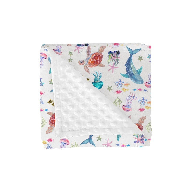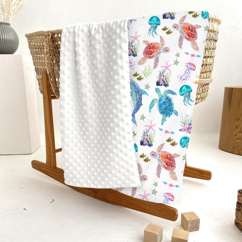 - 【Beautiful Sea Animals Patterns:】Our unique ocean life baby blanket features mix-and-matchable patterns in gender-neutral color. The baby blanket is great for tucking them in on stroller rides or wrapping them up come nap-time.