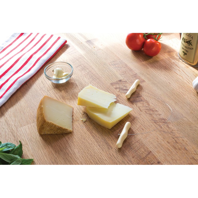 • Fantes Uncle Franco’s Cheese Wire easily cuts through blocks of cheddar, mozzarella, and Parmesan and allows each slice to be cut to desired thickness