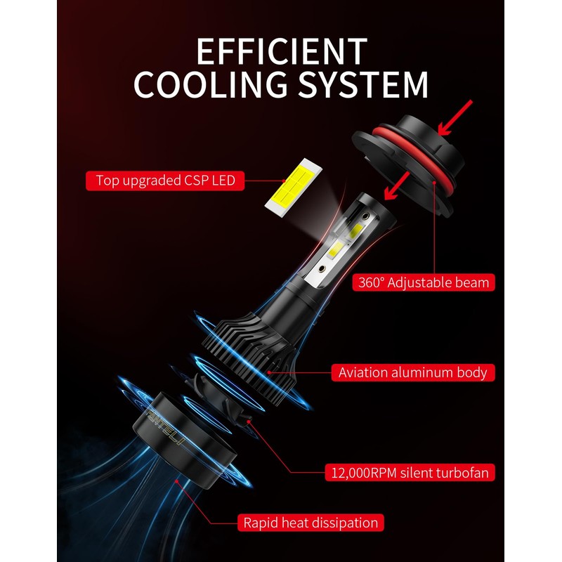 FANTELI 9007 LED Bulbs, 34000LM 800% Brighter, Backup HB5 Bulb, Plug & Play 6000K Cool White Interior Light, IP68 Waterproof Replacement, Pack of 2, License Plate Lights