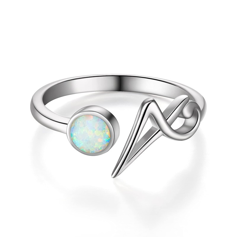 FANZE Mothers Day Gifts 925 Sterling Silver Initial Ring Opal Letter Ring for Women Alphabet Open Ring Adjustable Elegant Gift for Xmas