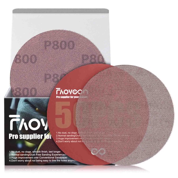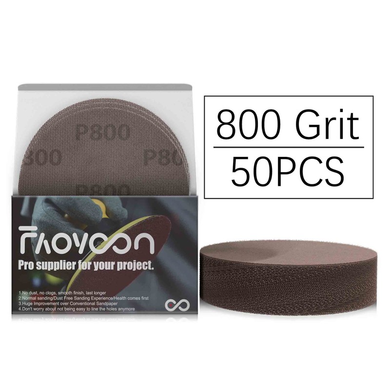 Faoyoon 5 Inch Sanding Mesh | Micro Mesh Hook and Loop Sanding Discs | Dust Free Net Sandpaper | 50 Pack 800 Grit | Wet and Dry Sanding Screen | Anti-Clog and Last Longer