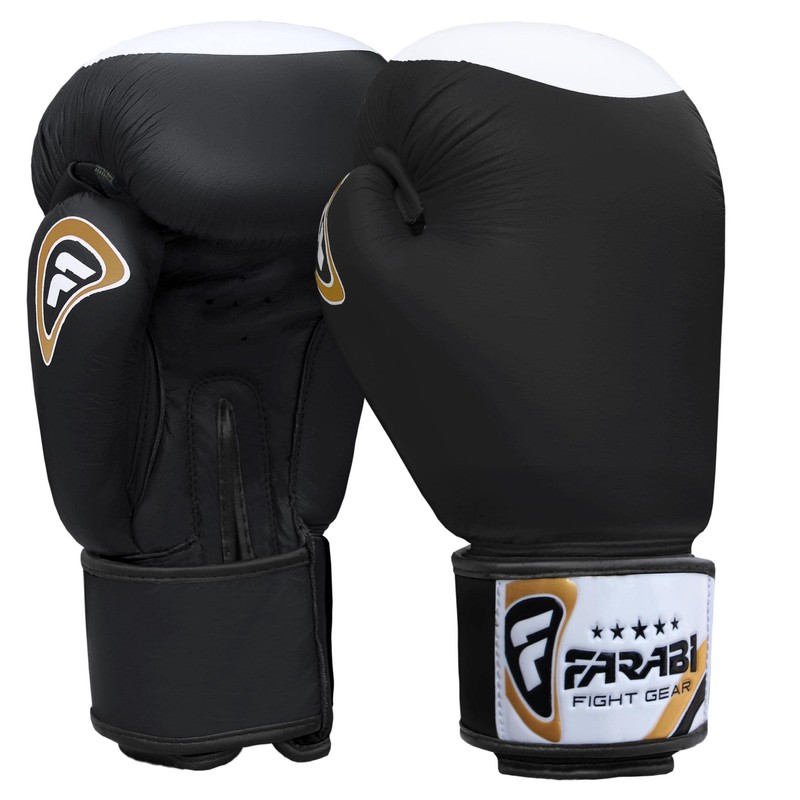 Farabi Boxing Gloves Real Leather Target Series (Black, 10-oz)