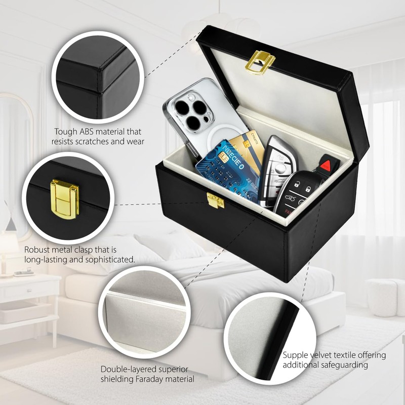 - Stop Keyless Car Theft: Faraday box provides a complete signal blocker for vehicle key fob, effectively stop remote access to the keyless entry system; The solution to a car being stolen every two minutes; easy to use, secure storage