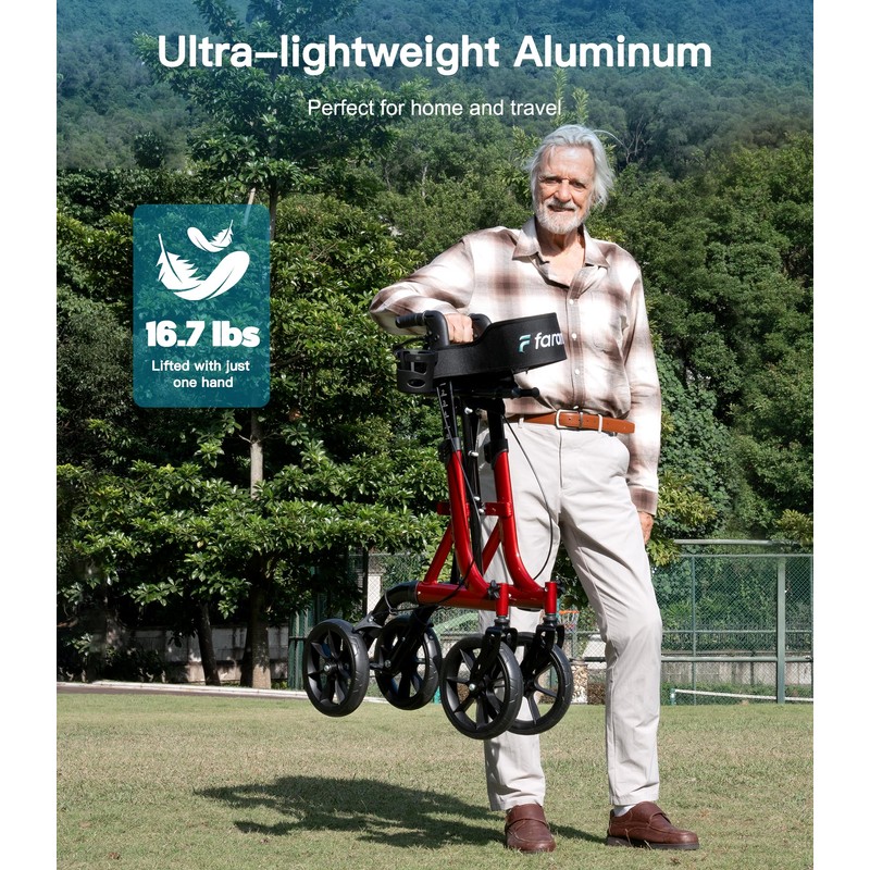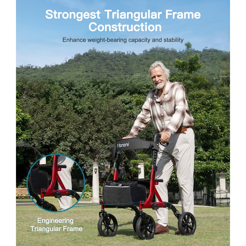 • Upgraded Triangular Frame Structure: Farani rollator walker features a sturdy triangular support design and durable aluminum frame, ensuring maximum safety and stability. This lightweight and portable walker maintains excellent balance on various terrains, making it ideal for daily use and travel. It provides users with a secure and reliable walking experience, offering peace of mind and reassurance.
