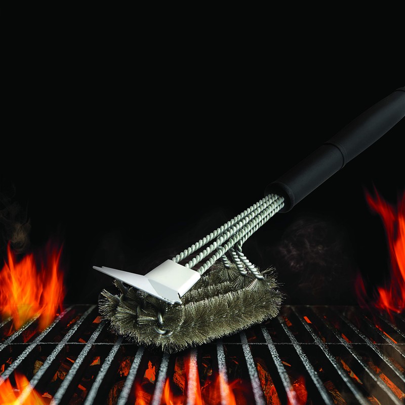 - THOROUGH GRILL CLEANING: triple, 360-degree bristle head slips into even the hardest-to-reach areas of your grill