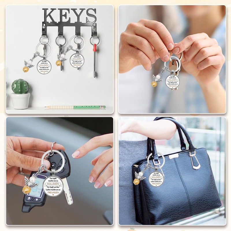 - Unique design: this keyring symbolises the time spent together at work, symbolises appreciation and cooperation, a reminder of a valuable relationship and shared experience, the guardian angel design symbolises your good wishes for your colleague, sends your thanks and encouragement to your colleague, it will protect your colleague instead of you