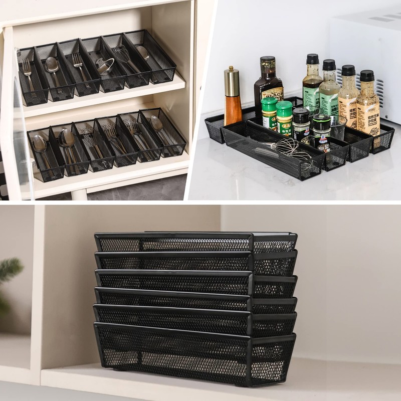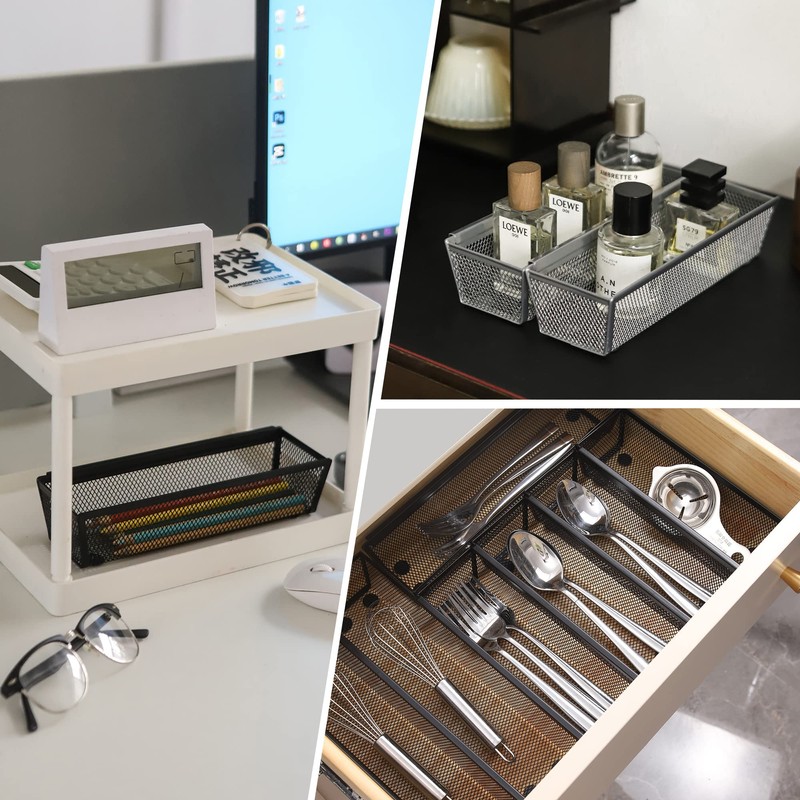 - Maximize Drawer Space: The package comes with 1 pieces of mesh cutlery tray with interlocking arm connection design can be freely combined to your requirements.This compact-sized utensil organizers set a good place for Forks, Spoons, Tools, Pens or Cosmetic,keep your home drawers organized.