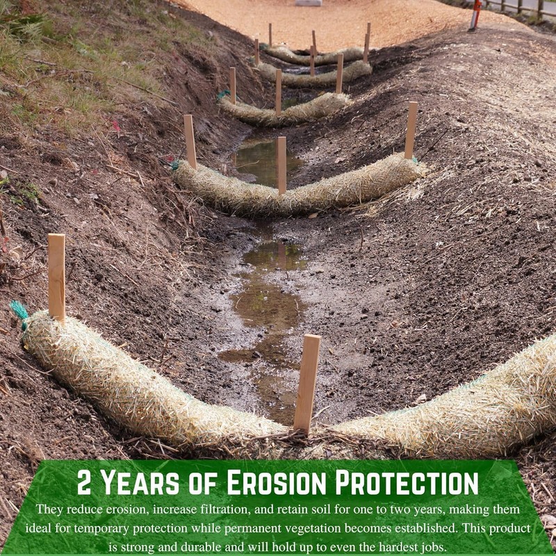 • Many Uses - Straw wattles are an excellent way to prevent sheet erosion, rills, and gullies by serving as a functional method of decelerating the velocity of water runoff in channels and slopes. They also serve to filter sediment out of water before entering storm drain inlets – especially useful in perimeter controls on lots and construction sites.
