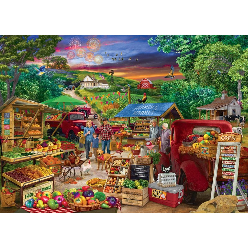 - Fun Challenge: Experience life on the farm with this entertaining jigsaw puzzle. Inspired by the popularity of farmer's markets, the design shows a lively scene in the country that consists of a family shopping for locally grown food.
