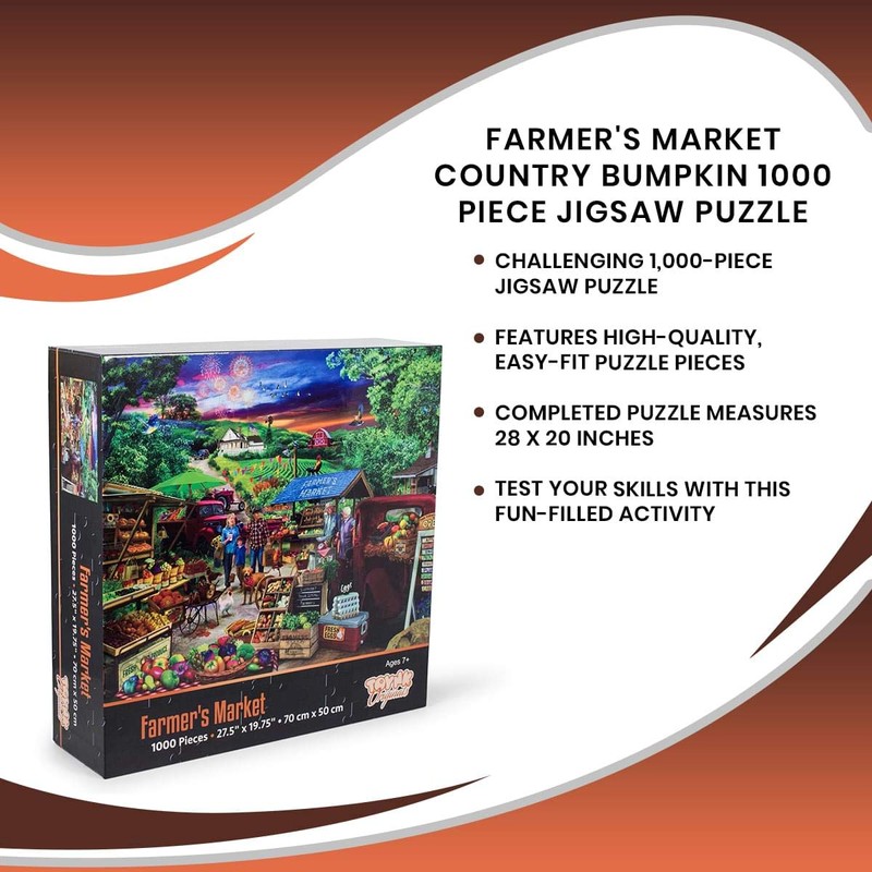 Farmer's Market Country Bumpkin Puzzle for Adults and Kids | Difficult 1000 Piece Jigsaw Puzzle Toy | Fun Quarantine Gifts | Interactive Brain Teaser for Game Night | 28 x 20 Inches