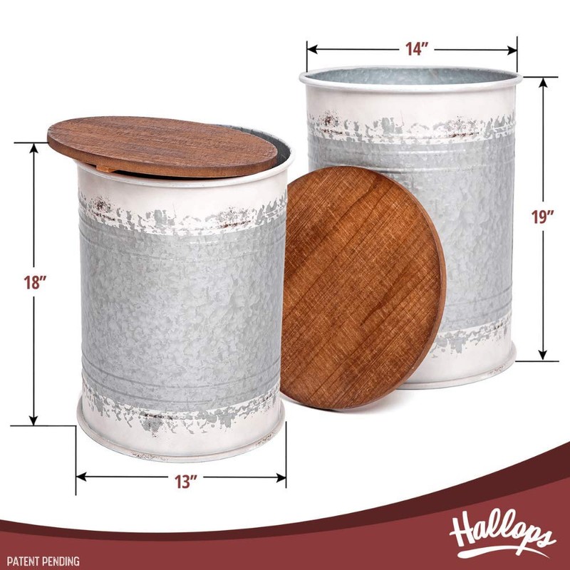 - Dimensions Of Barrels; 19" Height with 14" Diameter and 18" Height with 13" Diameter