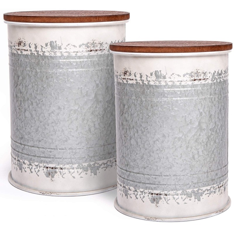 Farmhouse Accent Side Table - Galvanized Rustic End Table. Metal Storage Bin Wood Cover. Coffee or Cocktail Table. Nesting Pieces Two - Distressed White
