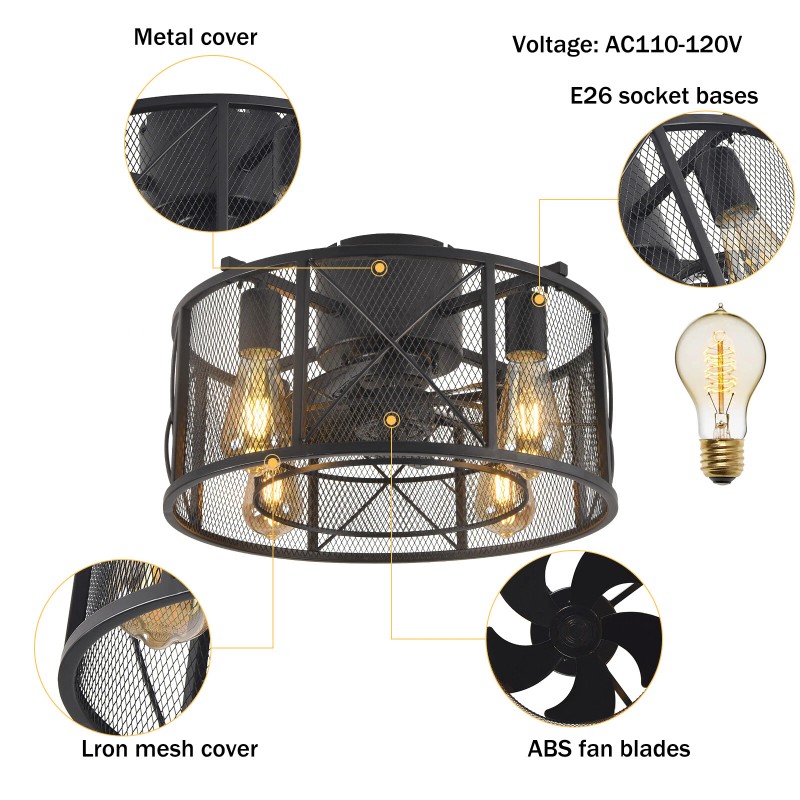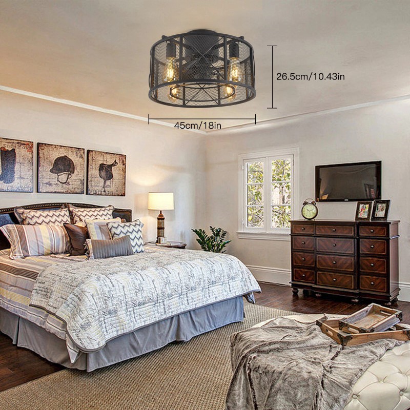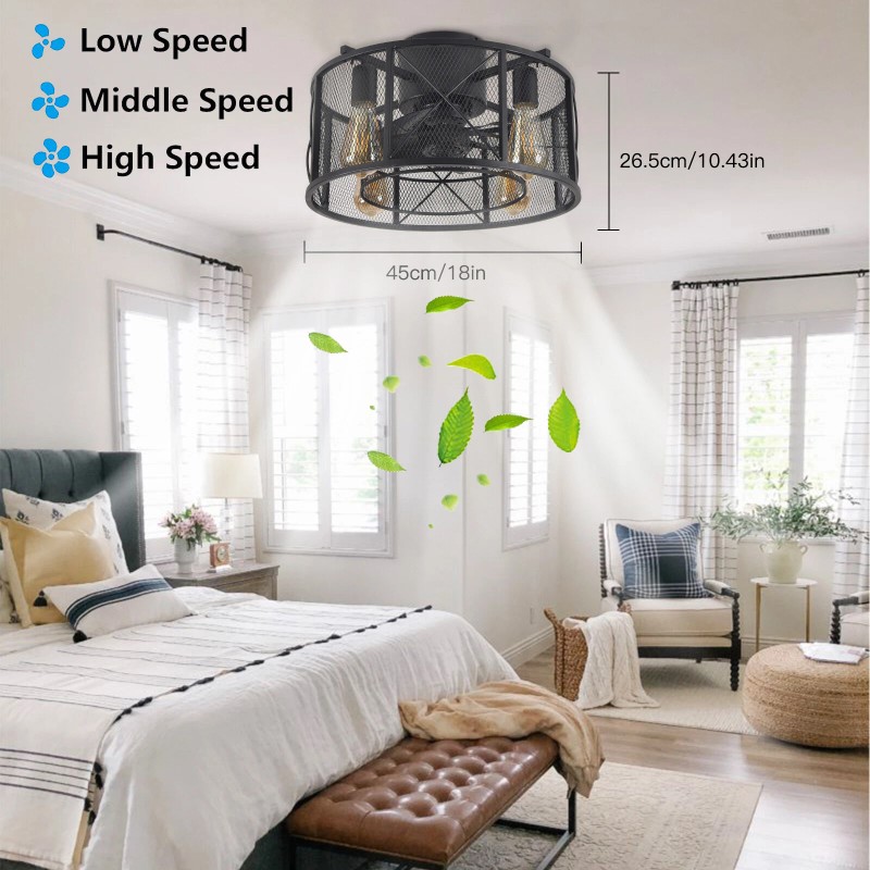 Farmhouse Caged Ceiling Fan Light 3-speed Metal Pendant Lamp w/ Remote Control