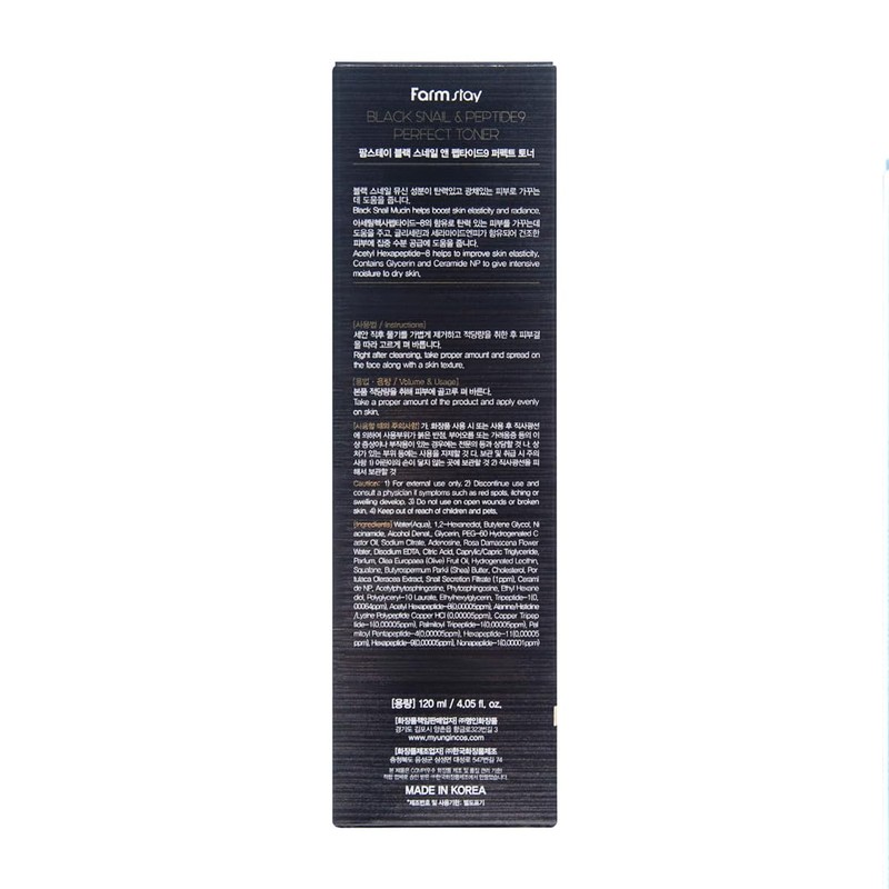 Farmstay Black Snail & Peptide 9 Perfect Toner, Snail Mucin Toner for Elastic & Glow Skin, Moisturizing & Anti-Aging, Smooths & Refine Skin Texutre, Korean Skin Care, for Women & Men, 4.05 Fl. Oz