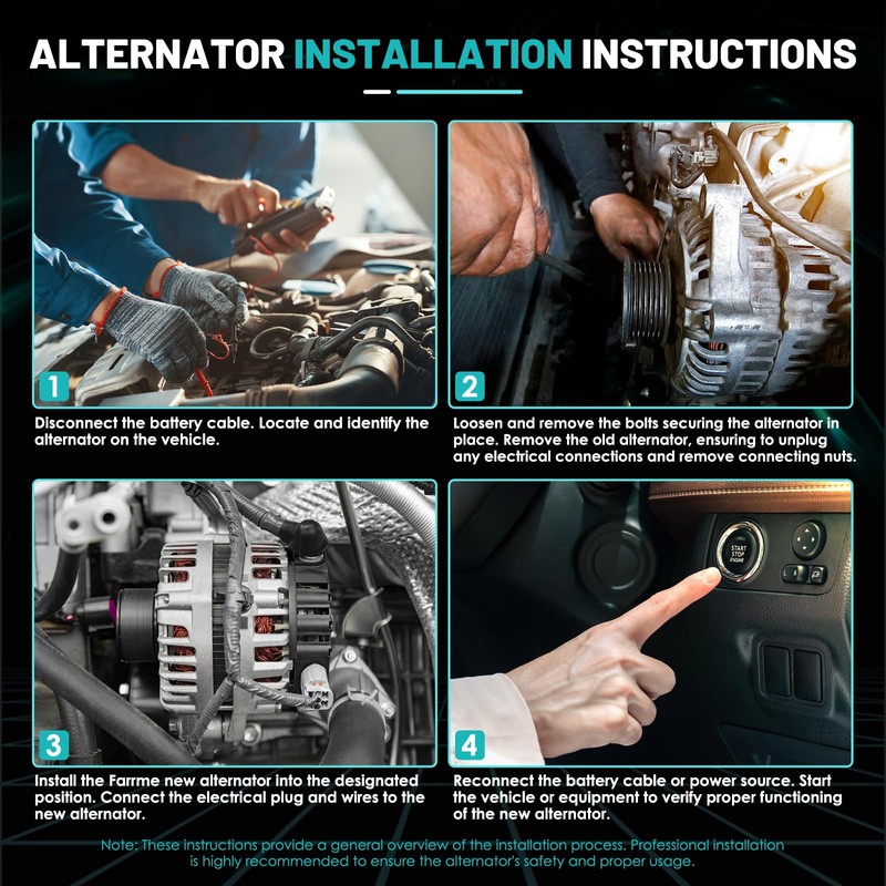 - High Efficiency & Stability: An alternator is a mechanical device that converts other forms of energy into electrical energy. Optimized electromagnetic design for improved energy conversion. Delivers stable power at all speeds, even at lower RPMs. Farrme makes alternators that work better in engine's high-heat environments.