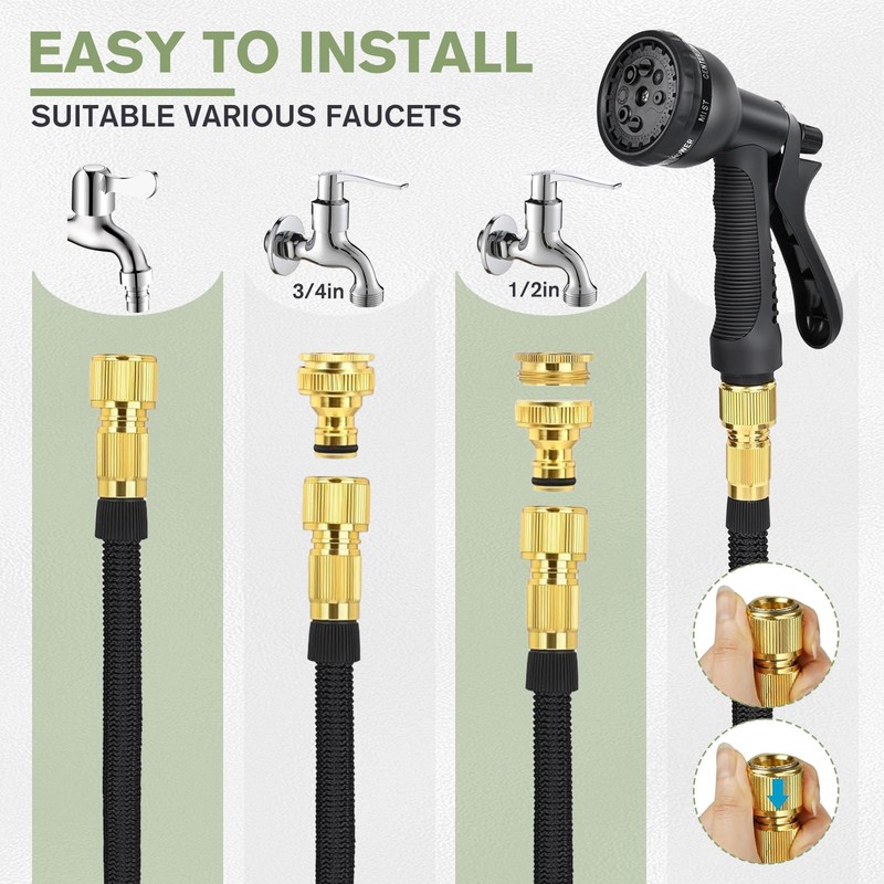 - ??Was Sie Bekommen??Dieser Gartenschlauch enth?lt alles f??r effiziente Gartenbew?sserung: einen hochwertigen Schlauch, eine 8-in-1 Spr??hbrause, einen Bedienungsanleitung, drei Ersatzdichtungen, Teflonband f??r zus?tzliche Dichtigkeit, einen Schlauchhalter, 1/2- und 3/4-Zoll-Messing Anschl??sse. Mit diesem umfassenden Set sind Sie bestens ausgestattet, um Ihren Garten optimal zu bew?ssern.