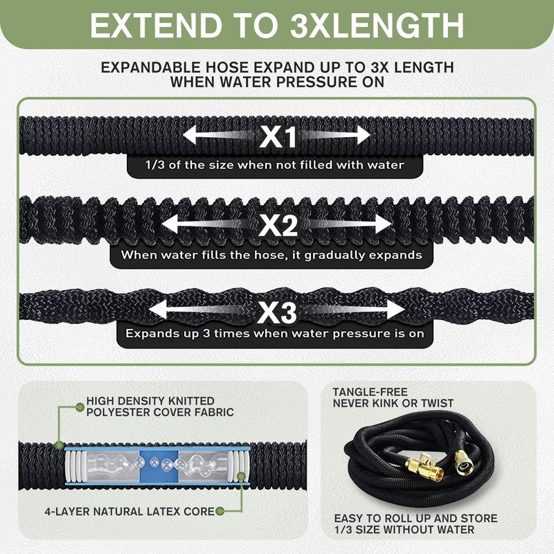 - ??Flexibel und Langlebig??Der Flexibler Gartenschlauch dehnt sich auf das Dreifache seiner urspr??nglichen L?nge aus und h?lt Dr??cken bis 10 bar stand. Die hochwertige Textilummantelung garantiert Abriebfestigkeit und Flexibilit?t. Das innovative System sorgt f??r knickfreien Wasserdurchfluss, selbst bei Verheddern oder Abknicken. Mit dem strapazierf?higen 3-Fach-Latex-Gewebe und flexiblem Polyester erreichen Sie jede Ecke in Ihrem Garten.