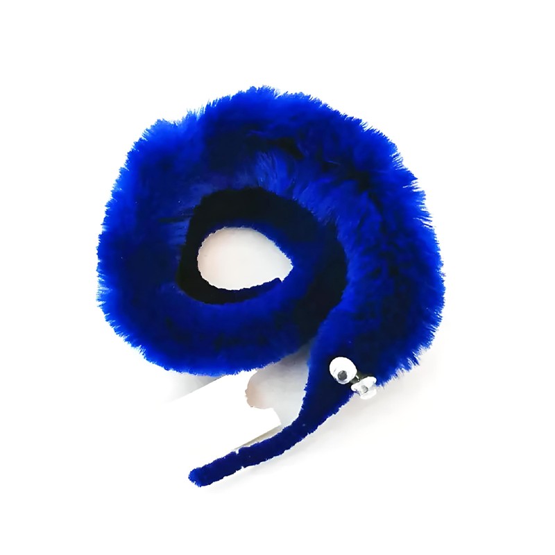 - A fluffy worm made of particularly soft plush with a thin, almost invisible cord.